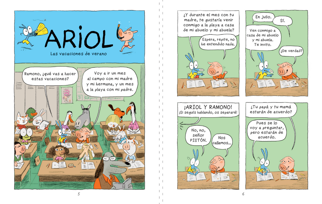 ARIOL es un burrito azul con gafas, vive en las afueras con sus papás, su mejor amigo es un cerdo, está enamorado de la becerra más guapa de su clase y su maestro es un perro grande. En resumen, Ariol es exactamente como tú y como yo, con las mismas dudas, ocurrencias y ganas de divertirse.